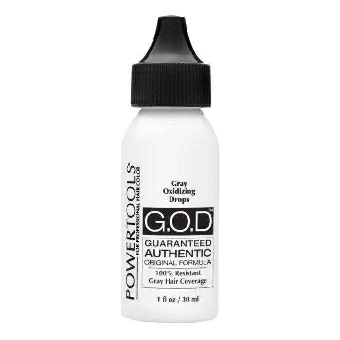 Krople wspomagające pokrycie siwych włosów. Idealne rozwiązanie dla pokrycia siwych opornych na koloryzację włosów. G.O.D. to produkt, który pomoże dogłębnie penetrować włos dzięki czemu pigmenty koloru przedostają oraz osadzają się głębiej, a siwy włos pokryty jest dokładnie i trwale. Dodatkowo uzyskujemy wspaniały połysk oraz niesamowitą trwałość koloru. Kolor na siwych włosach jest głęboki i nasycony ! Nie wpływa na konsystencje mieszanki.